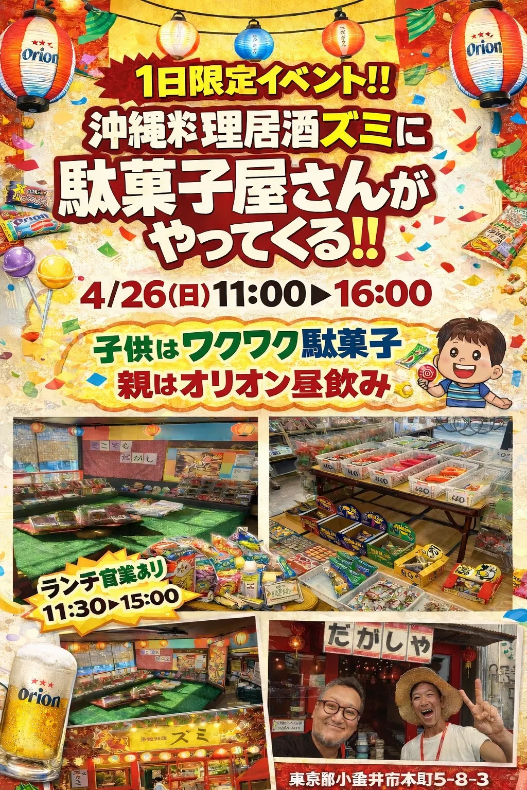 お子様はワクワクの駄菓子を、親御様はオリオンビールで昼飲みをお楽しみいただける、ご家族みんなで笑顔になれるイベントです!